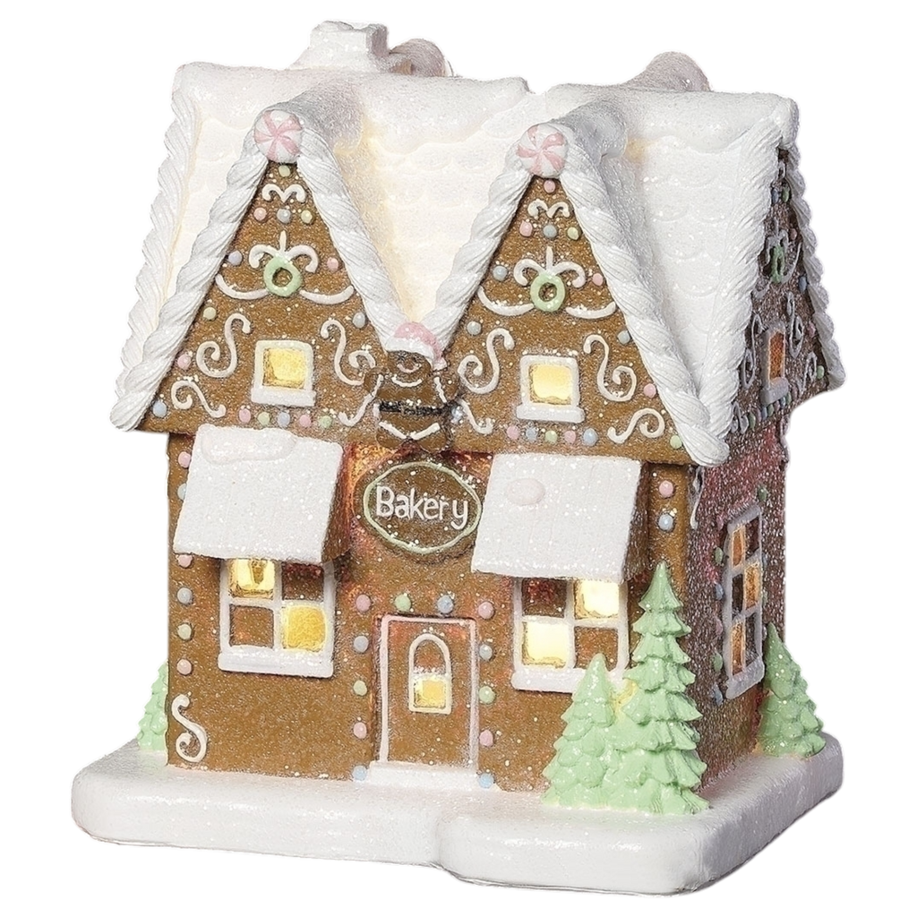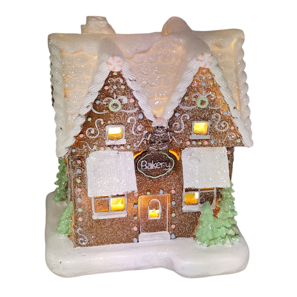 Whimsical Gingerbread Bakery Light-Up House - 6 inches