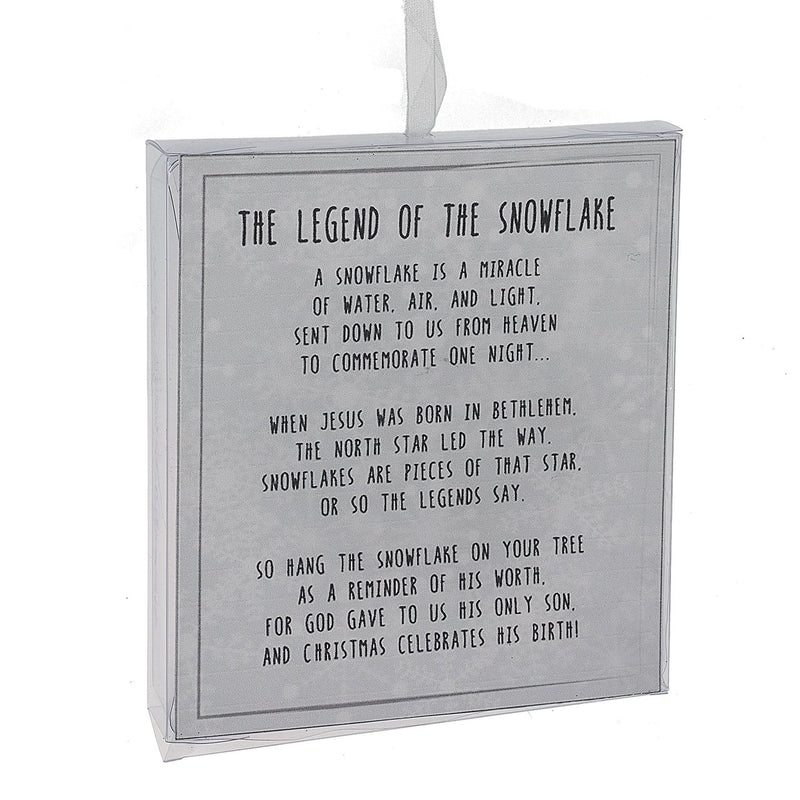 The Legend of the Snowflake: A snowflake is a miracle of water, air, and light, sent down to us from heaven to commemorate on the night; when Jesus was born in Bethlehem
