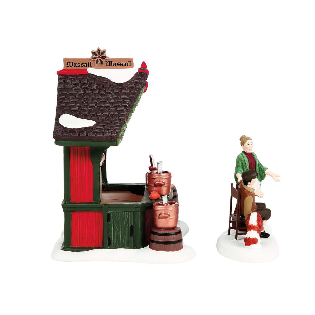 • Traditional Toasting: Depicts a "Wassail Booth" set (S/2) that includes the lighted market stall and a pair of villagers enjoying their drinks.