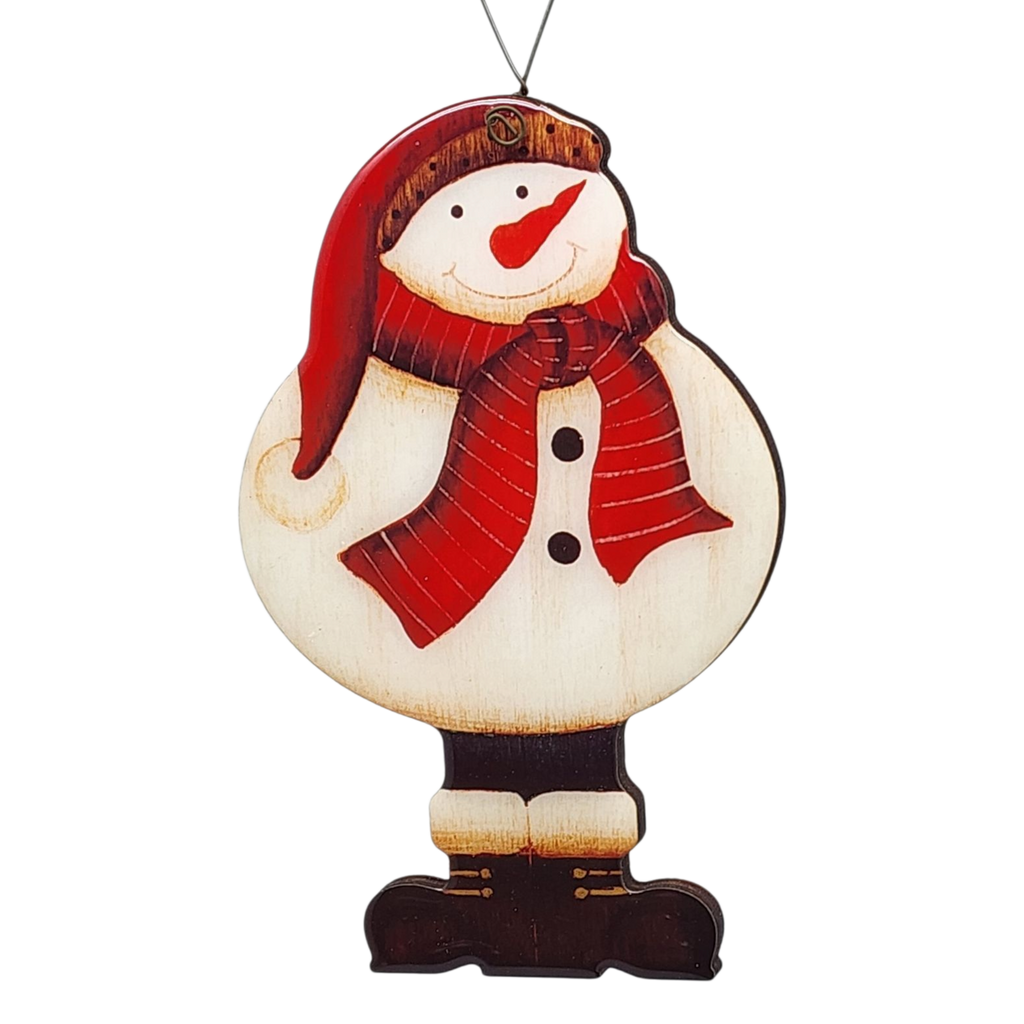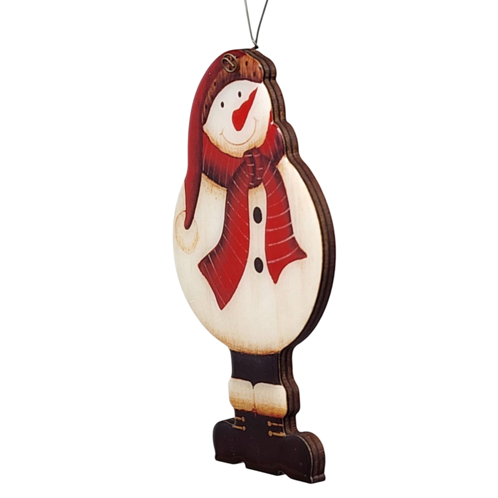 Meet Frosty, the cheerful snowman bringing winter wonder to your holiday decor! This delightful wooden ornament features Frosty with a signature red scarf, cheerful button eyes, and a playful smile. His charming demeanor captures the essence of the joy of winter and the spirit of togetherness that the season brings. Whether perched on your Christmas tree or hanging in your favorite cozy nook, this ornament is sure to warm hearts even on the coldest days.