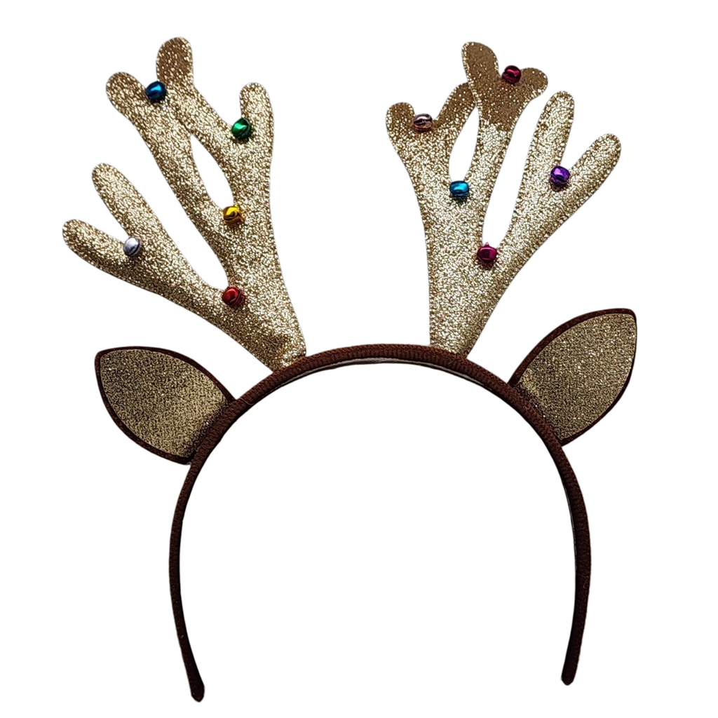 - Bright, glittery antlers with colorful bell accents.