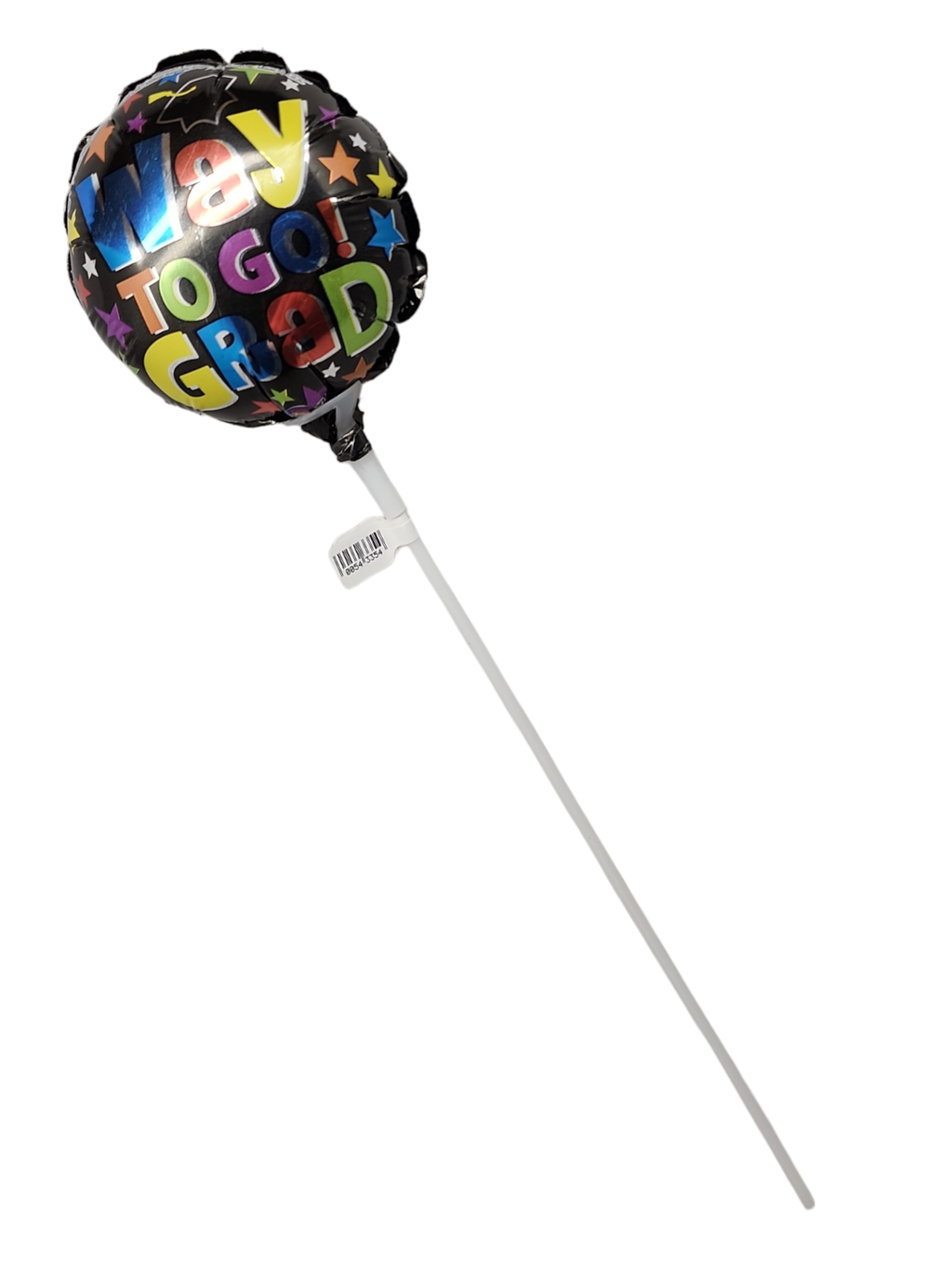 3" pre-inflated Mylar Balloon with a 12" plastic stick.