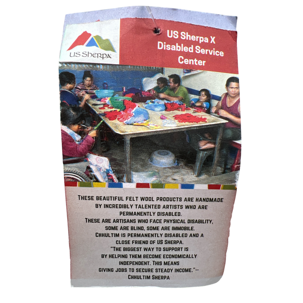 The Felt Sheep is not just a cute decor piece; it's also a testament to the inspiring work being done by artisans with disabilities. Each product is made through the US Sherpa’s partnership with the Disabled Service Center, where talented individuals create beautiful crafts to promote independence and self-sustainability. Bring home this lovable Felt Sheep and support a meaningful cause while adding a touch of charm to your space!
