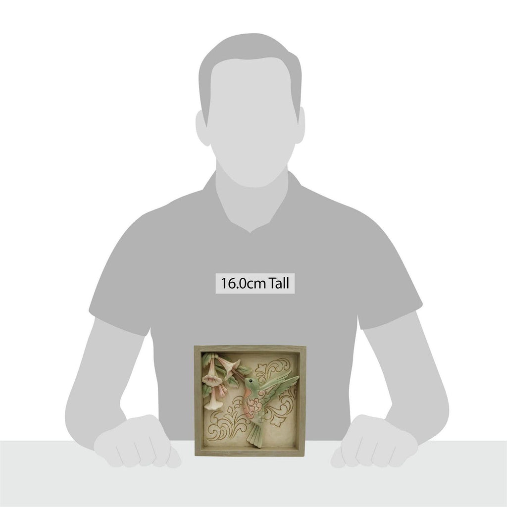 These hand painted decorative plaques by Jim Shore add a little wonder around the house. With detailed rosemåling and quilt art pattern these plaques add enchanting accent to any room. This plaque showcases a hummingbird delighted by nectar.