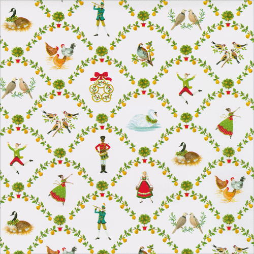 Bring a touch of whimsy and tradition to your holiday gift-giving with our "On The Twelfth Day" Roll Wrap. Inspired by the classic carol "The Twelve Days of Christmas," this delightful wrapping paper features charming illustrations of enchanting characters and festive scenes, from dancing birds to playful nutcrackers, all beautifully intertwined with festive greenery. Each roll is packed with enough paper to wrap a mountain of gifts, ensuring that each present under the tree is not only a joy to behold but also a festive celebration of the season.