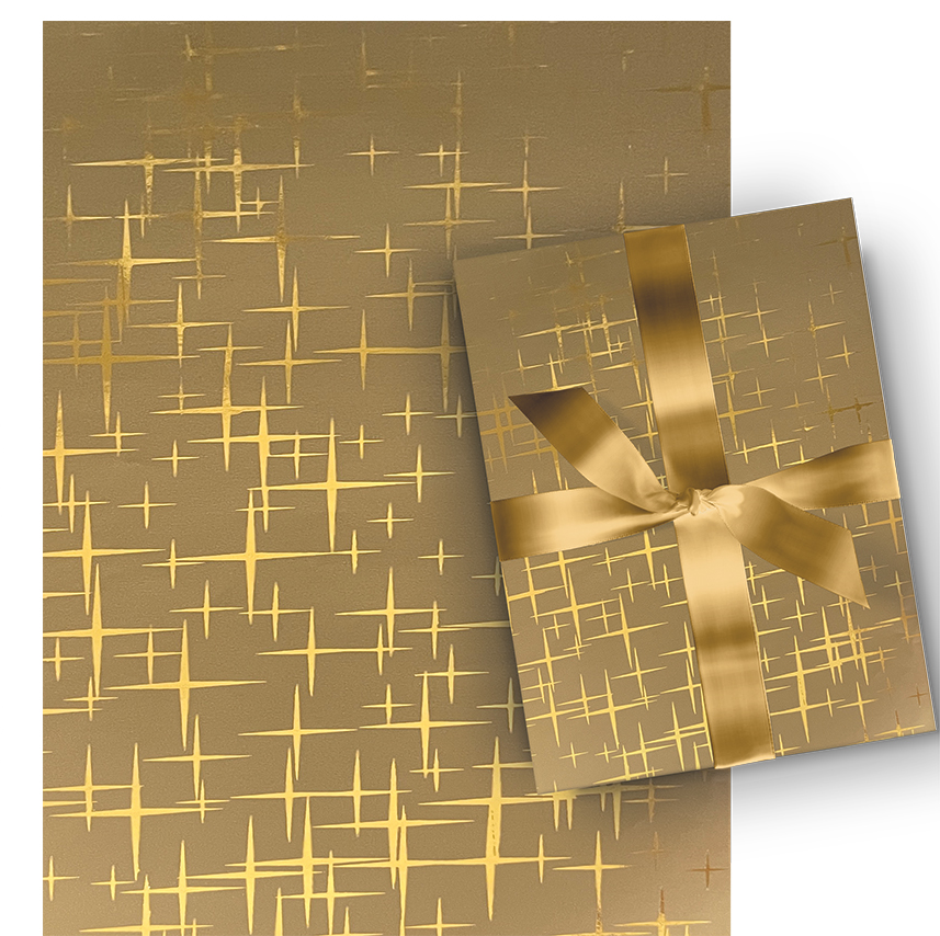 The foil finish not only provides a striking, reflective quality but also ensures your presents are wrapped in durable beauty, lasting through the excitement of the holiday unwrapping. The grid design, reminiscent of mid-century modern aesthetics, adds a refined yet contemporary flair to your gift-giving tradition. Gold has long been associated with glamor and celebration, making it a timeless choice for any festive occasion. Elevate your gift presentation this season and make every package shine with the unmatched allure of Golden Grid Elegance Gift Wrap.