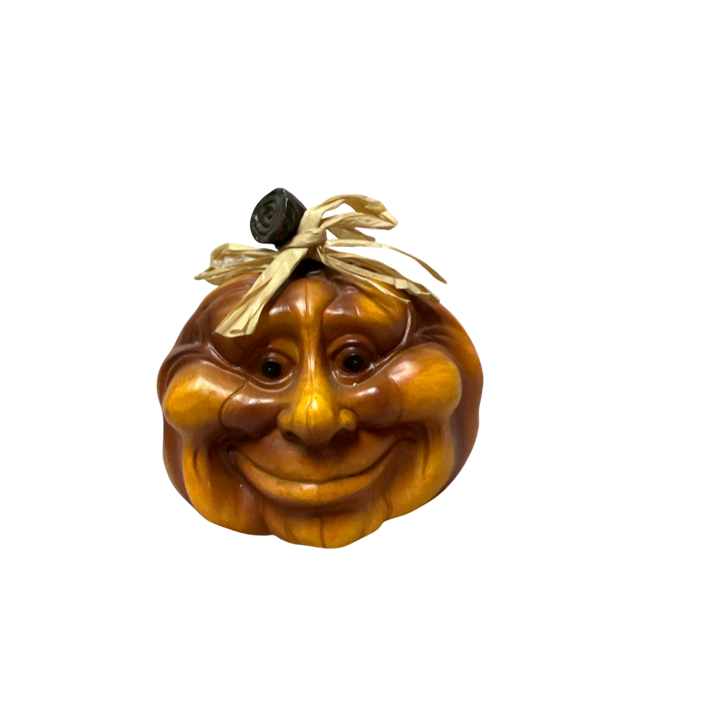 Introduce the charming Expression Pumpkin - Bashful Bart into your fall decor and instantly add a touch of delightful whimsy! Standing at 3.25 inches tall and 3.5 inches wide, this adorable pumpkin features a shy smile that captures the essence of warmth and sweetness. Hand-painted in rich, inviting shades of orange and brown, Bashful Bart is made from high-quality polyresin, ensuring that every detail is beautifully showcased.