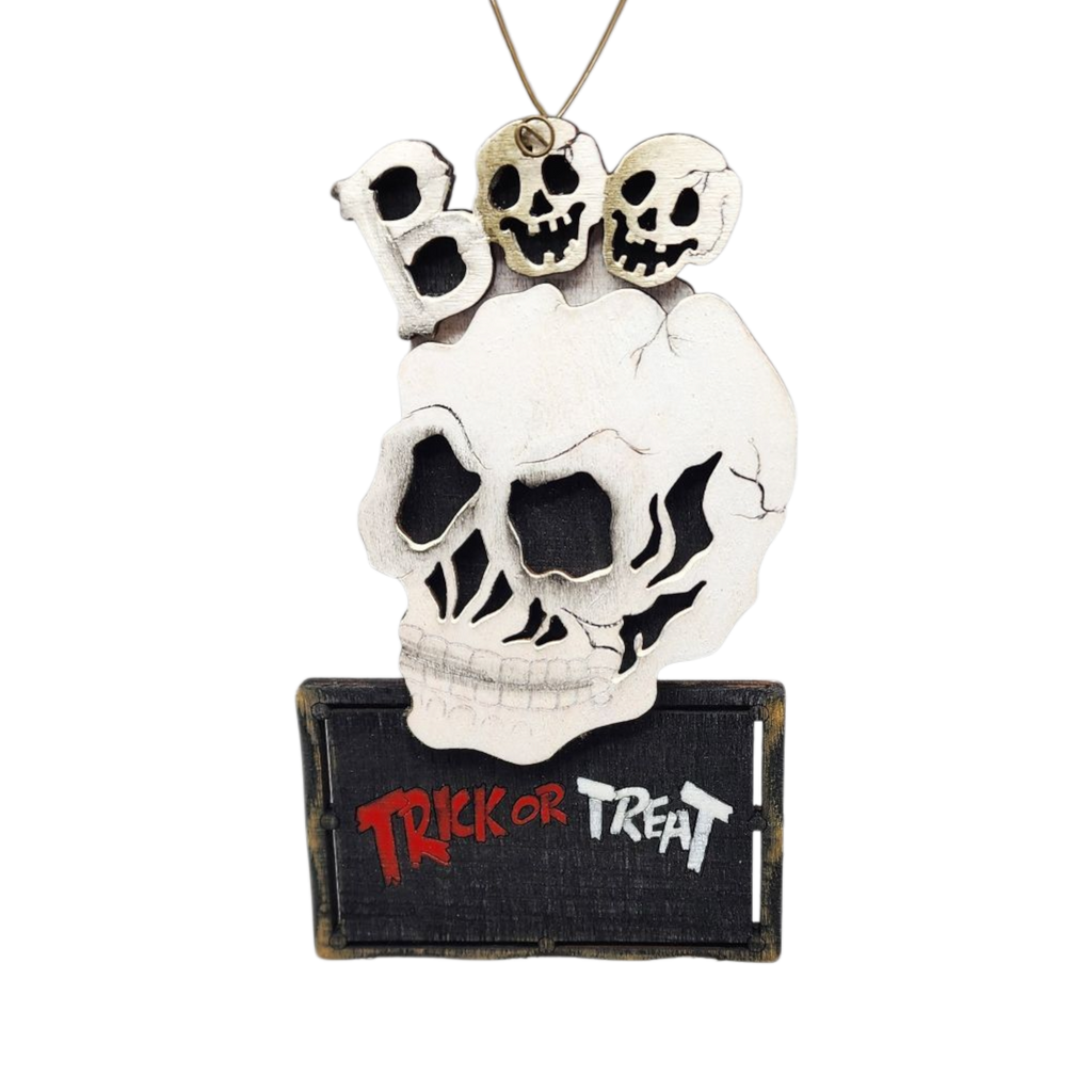 Wooden Halloween Ornament - Skull