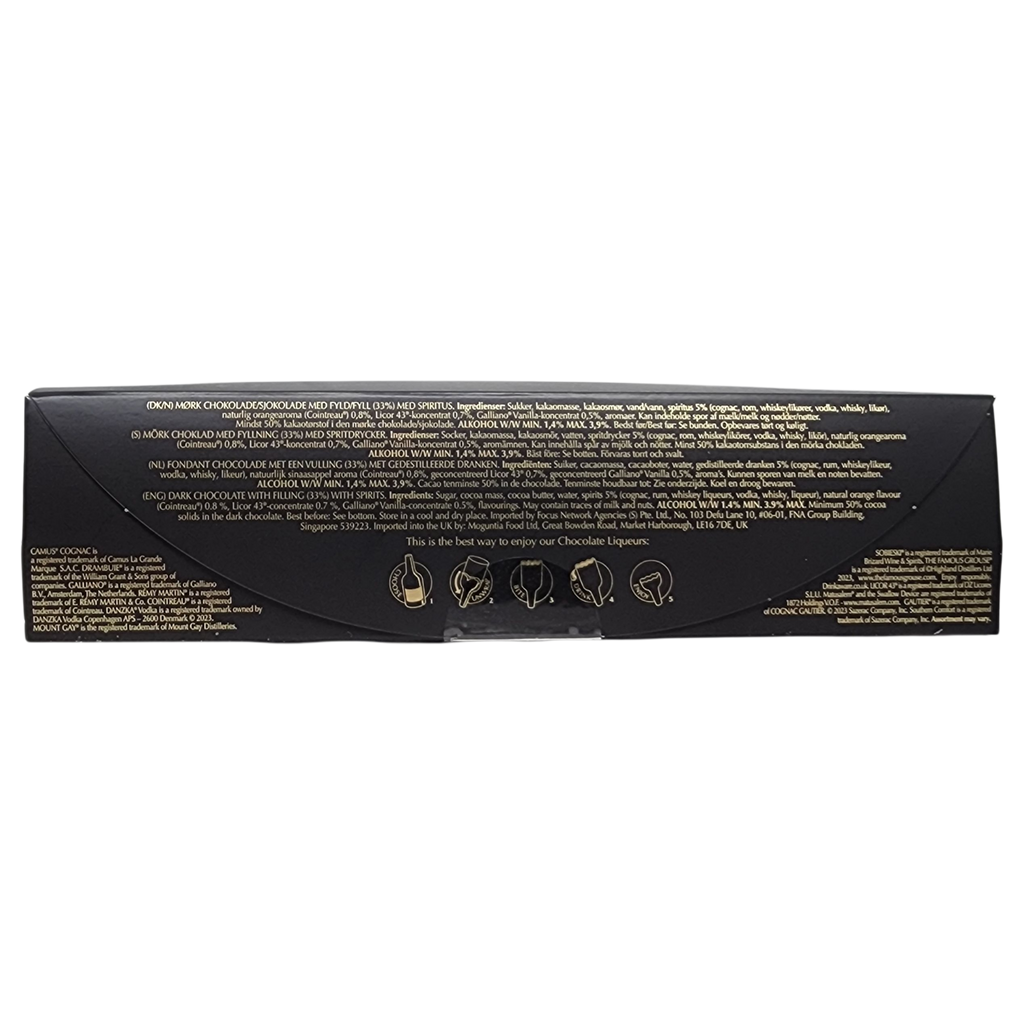 - Contains 16 pieces of dark chocolate filled with premium spirits