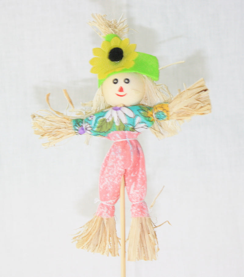 Perfect for a Potted plant or Wreath, cute little Scarecrow dressed in bright fashion colors (it's what all the Posh Scarecrows are wearing!)