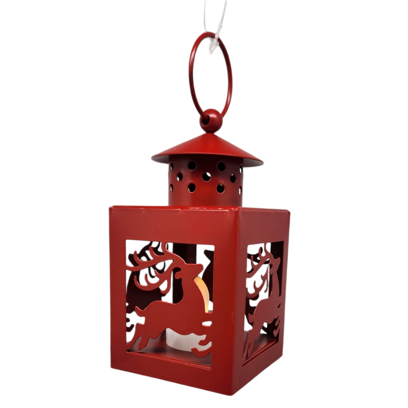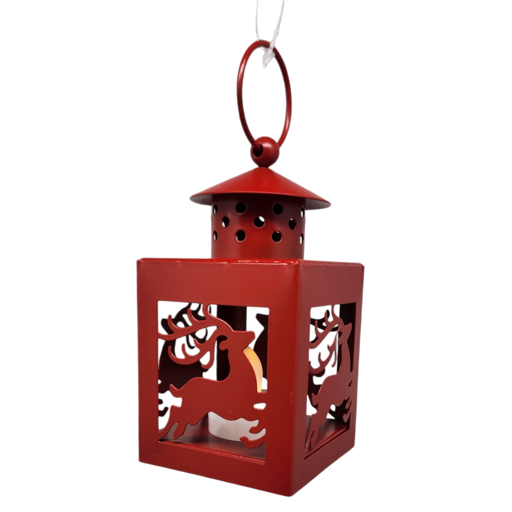 Perfect for creating a warm and inviting atmosphere, this red metal lantern with a reindeer design brings a touch of seasonal magic to any space. Whether you're decorating indoors or out, this charming lantern is sure to be a cherished addition to your holiday decorations.