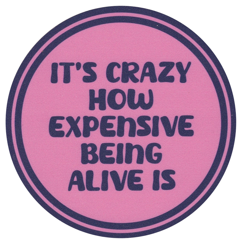 Bring some humor to your everyday life with the It's Crazy How Expensive Being Alive Is Coaster! Featuring the relatable phrase in bold, playful lettering, this coaster perfectly captures the lighthearted frustration many feel about the costs of living. It's a fantastic addition to your kitchen or dining area, making it a great conversation starter and a fun reminder to not take life too seriously.