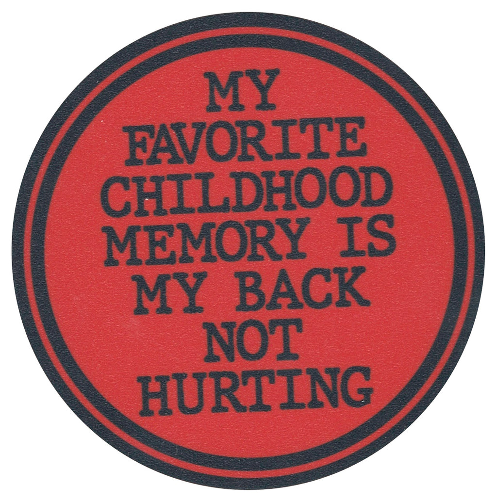 Bring a hearty laugh to your home décor with the Nostalgic Humor Coaster! Boldly stating “My favorite childhood memory is my back not hurting,” this witty design resonates with anyone navigating the ups and downs of adulthood. Perfect for gatherings where you share fond stories of youth, it serves as a cheeky reminder of the carefree days when aches and pains were just a distant thought. This coaster is especially fitting for National Laughter Day, bringing a lighthearted touch to parties and get-togethers.
