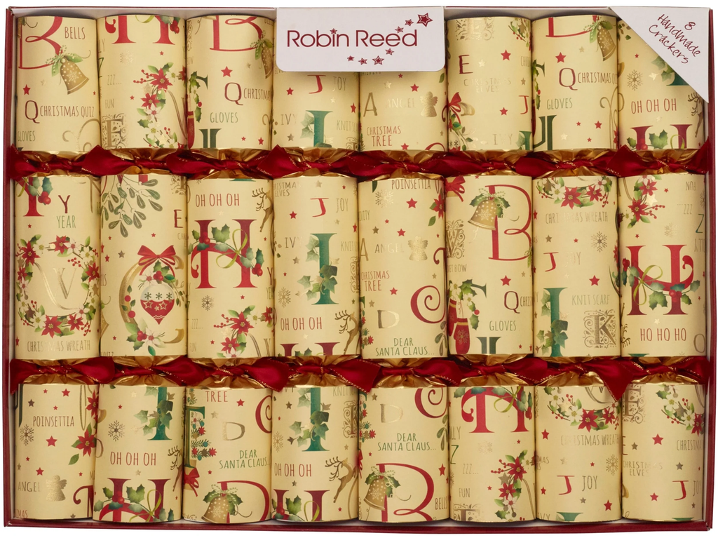 - Set includes eight beautifully wrapped holiday-themed crackers.