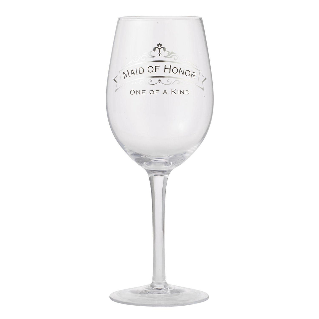 This elegant Maid of Honor wine glass is mouth blown for superior clarity and shine. The intricate detail is done in a silver mirror finish. Handwash only. Glass is engravable.