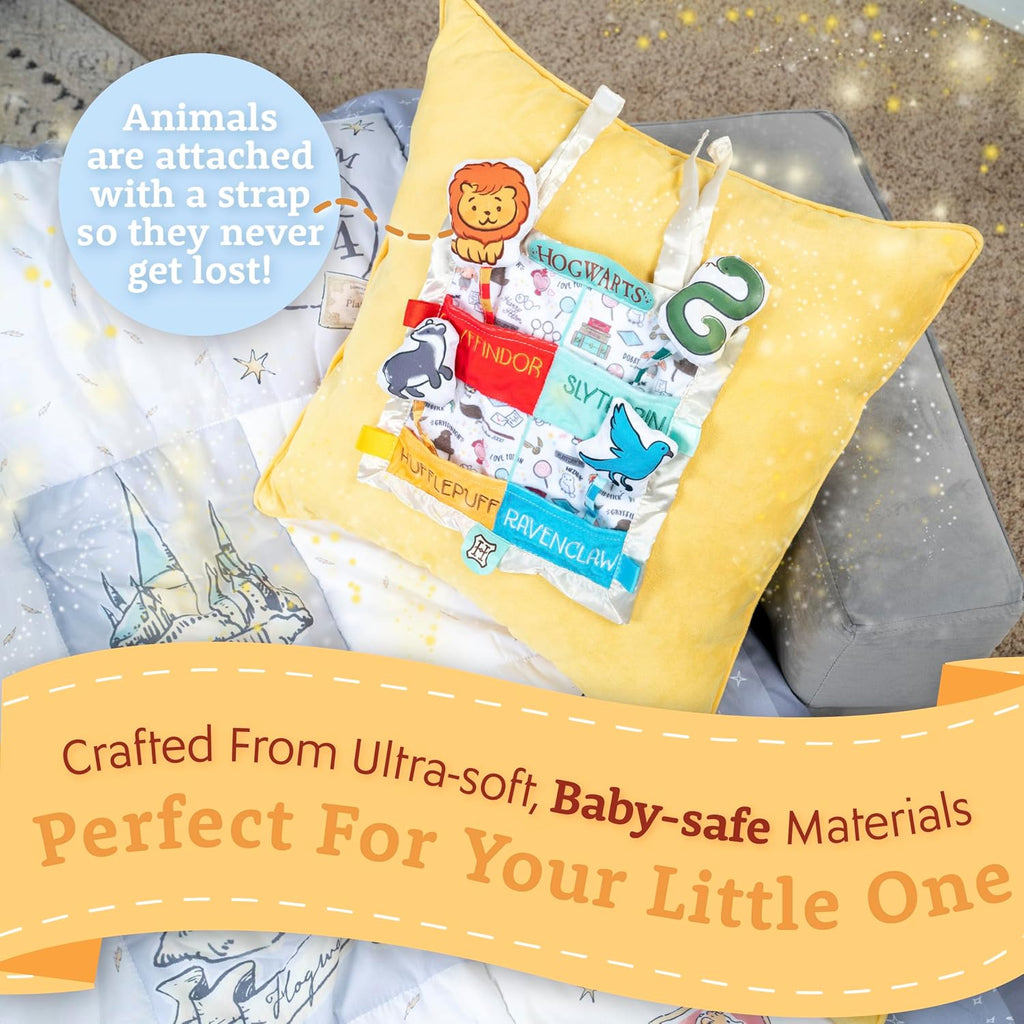 Designed with fun in mind, this activity blanket includes vibrant patches with crinkle sounds and peek-a-boo pockets that captivate your child's attention. The multiple textures invite tactile curiosity, while the plush characters and Velcro straps provide convenience for on-the-go fun, ensuring your little one can take a piece of the magic wherever they venture. Ideal for gifting at baby showers, for newborn arrivals, or first birthdays, this adorable lovey blanket is suitable for both boys and girls from birth through toddlerhood. Packaged in a lovely windowed gift box, it’s a perfect choice for any Hogwarts fan!