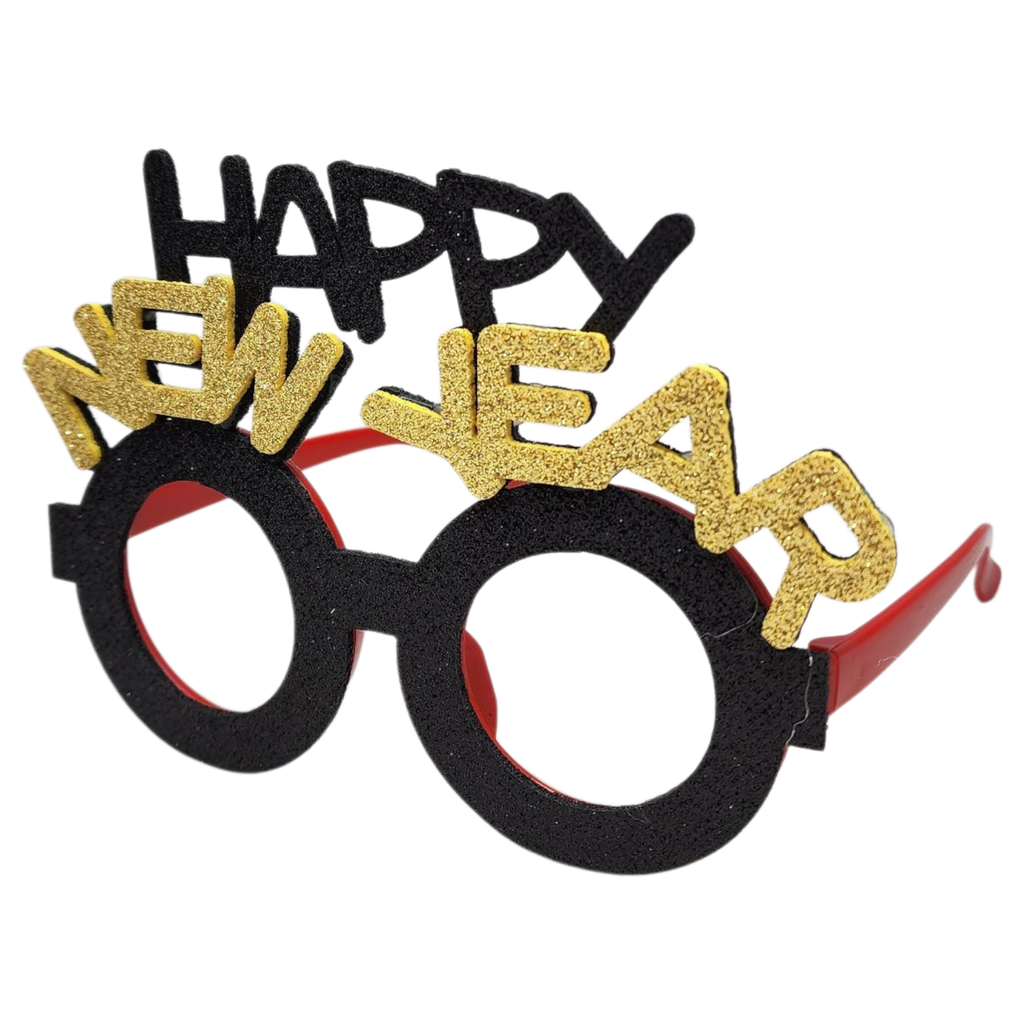 Get ready to bring in the New Year with style and sparkle! These fabulous novelty eyeglasses are adorned with glittery letters that spell out "Happy New Year," making them the perfect accessory for your New Year's Eve celebration. With their vibrant black and gleaming gold accents, they add a fun twist to any party outfit. The tradition of wearing festive glasses dates back over a century, making them a timeless choice for marking the joyous occasion!