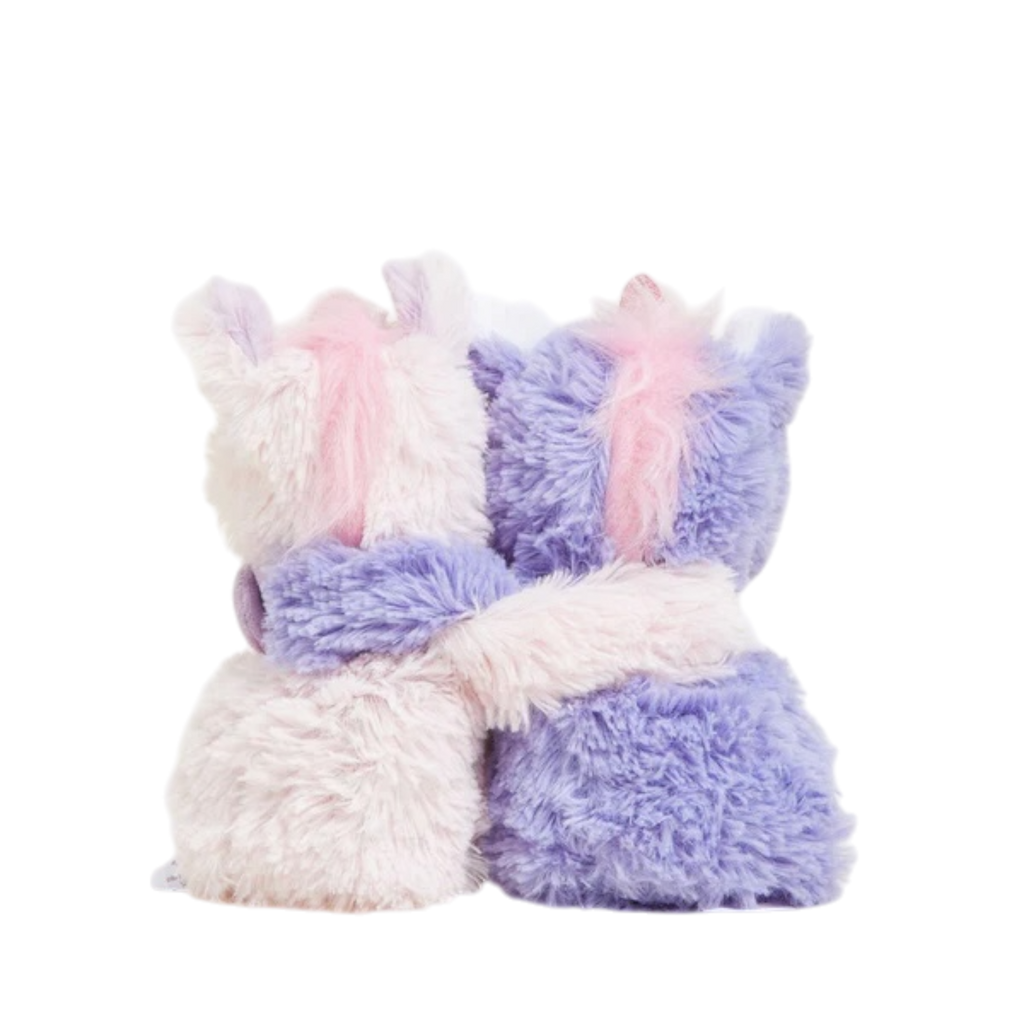 Unicorn Hugs Warmies – Double the magic, double the comfort—Unicorn Hugs Warmies are a heartwarming duo designed to bring cozy cuddles and cheerful companionship wherever you go. These pastel plush unicorns, one pink and one purple, wrap their arms around each other with Velcro, creating a hug that’s both adorable and reassuring. Gently weighted and filled with natural grains and French lavender, they offer soothing warmth when microwaved and calming comfort for kids, siblings, or anyone needing a little extra love.