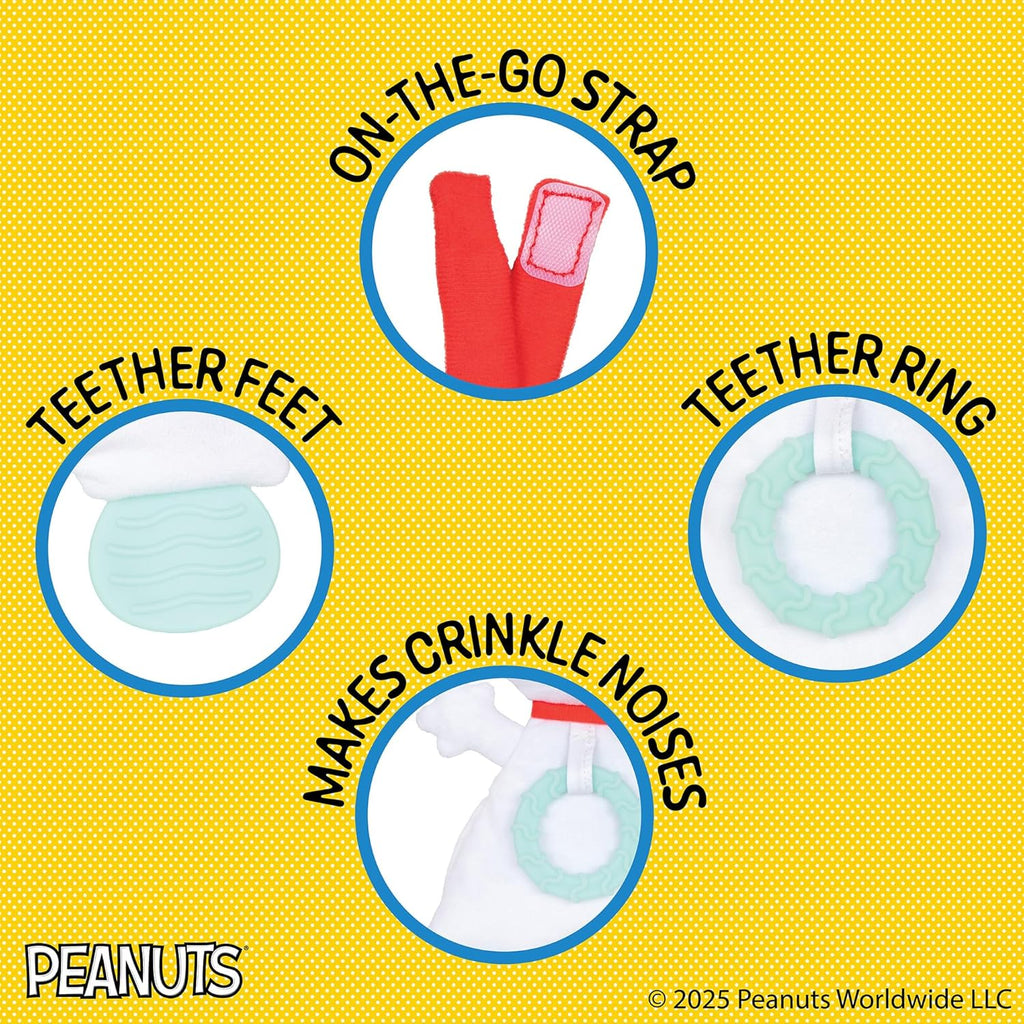 Snoopy has been a beloved character since the Peanuts comic strip first appeared in the 1950s, symbolizing friendship and cheerful companionship. This travel-friendly lovey is lightweight with a handy carry loop, making it easy to bring along on stroller walks or car rides to keep little ones calm and content. Plus, its spot-clean fabric means it stays fresh and ready to snuggle no matter where the day takes you.