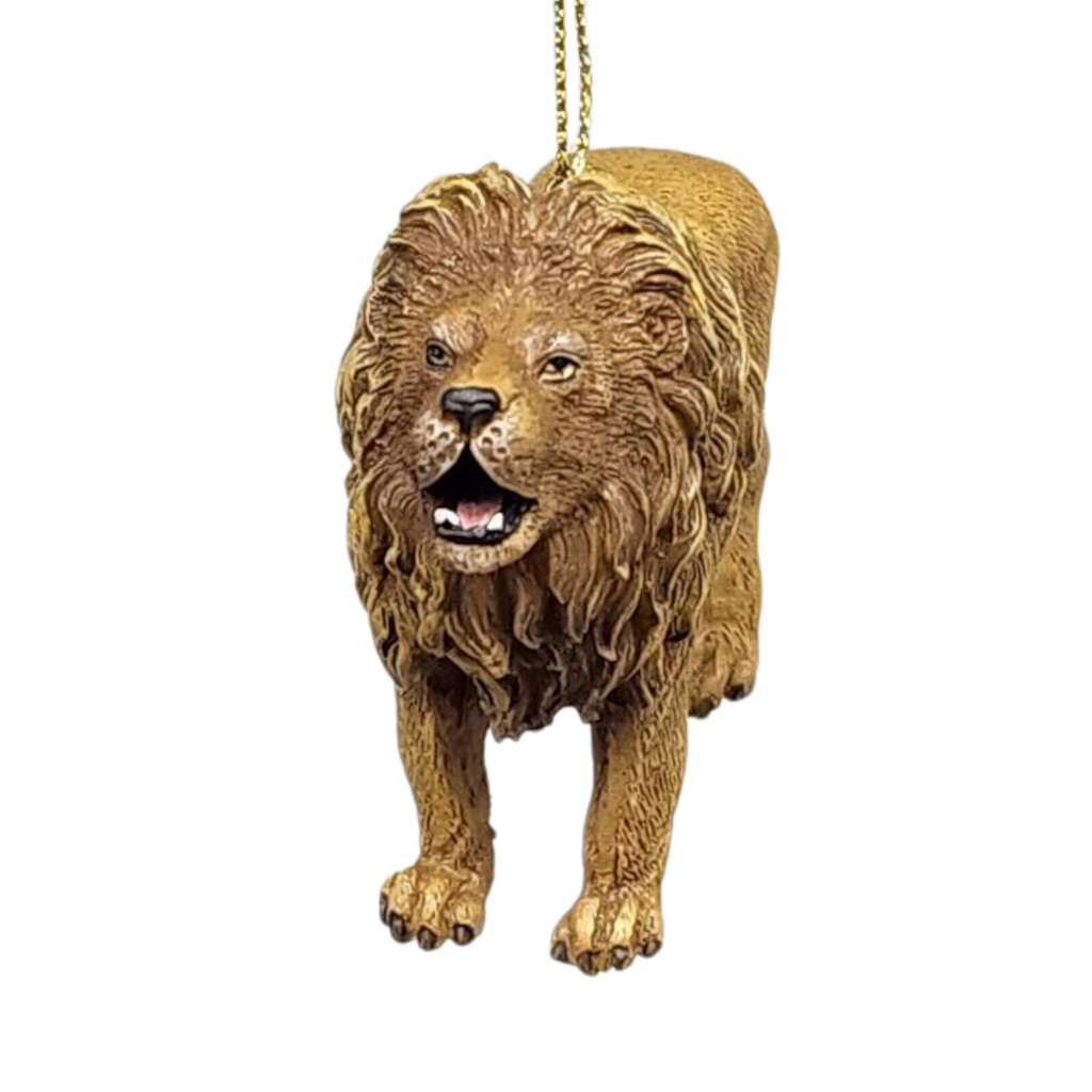 Bring the king of the jungle to your holiday décor with this beautifully detailed lion ornament. Crafted from resin and painted in warm, golden tones, the lion’s impressive mane and roaring expression capture the wild spirit and regal power that lions symbolize. This ornament reminds us why lions are often called the "king of beasts," representing courage and leadership—qualities that make a striking statement on any tree or decorative display.