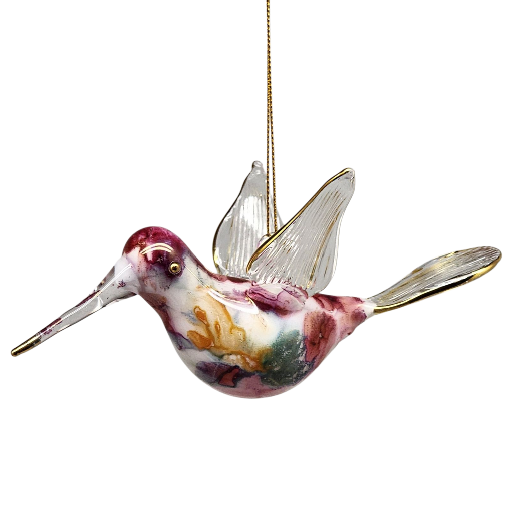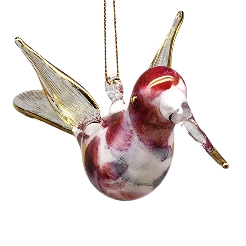 Blown Glass Hummingbird - "Crimson Rose Blossom" Color