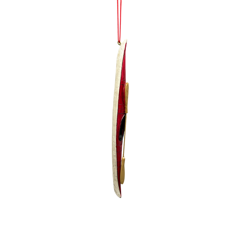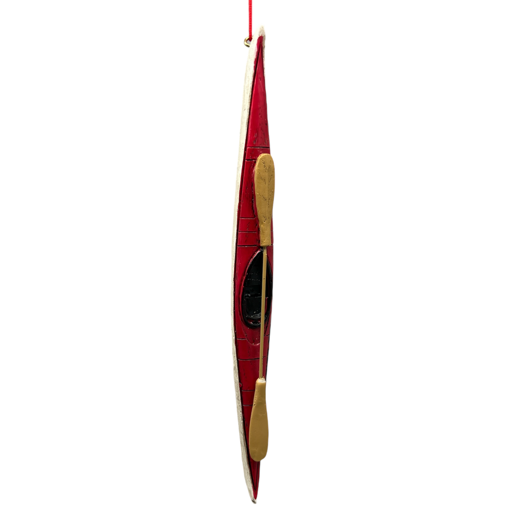 Hand Painted Polyresin Ornament of a Kayak with attached dual ended Paddle