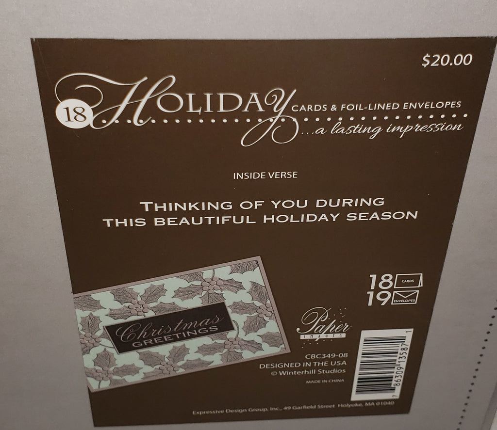 Contains 18 cards and 19 envelopes (in case of mistakes)