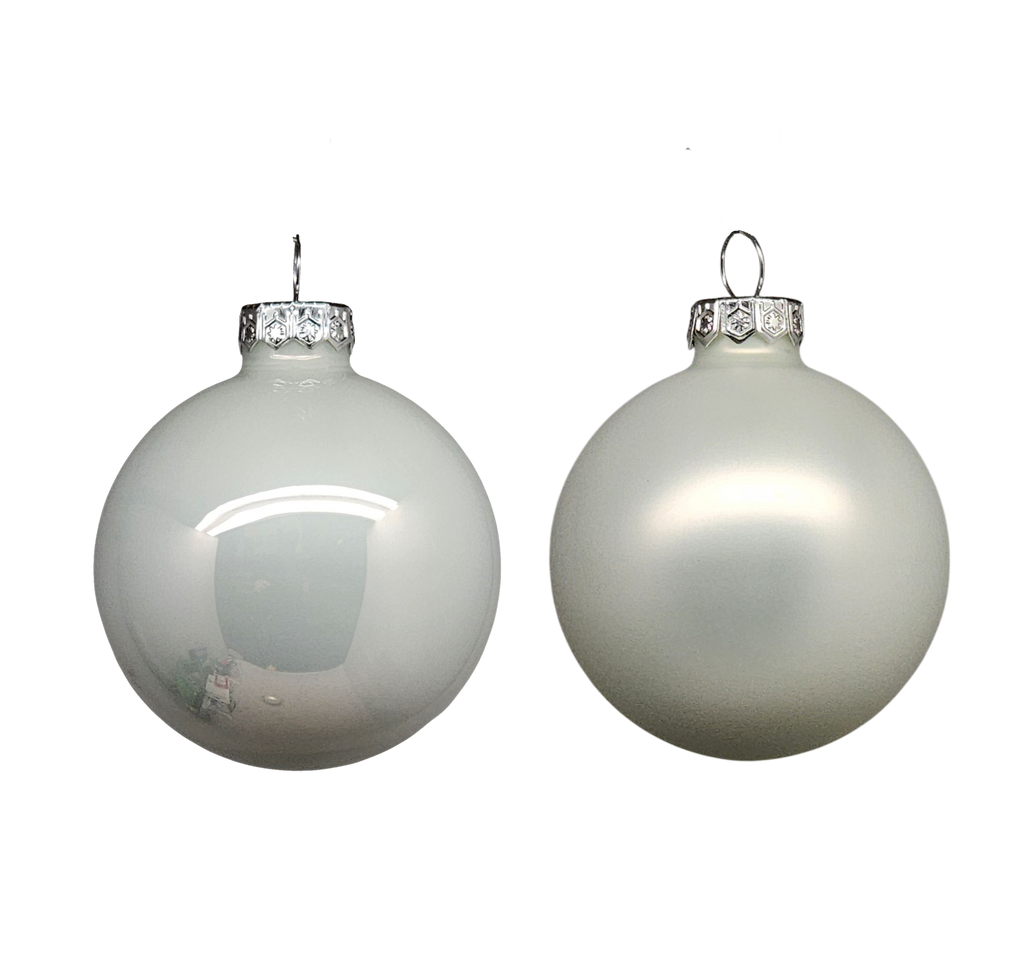 Winter White Glass Ornaments - 10 Piece Set - 2.4 inch Diameter