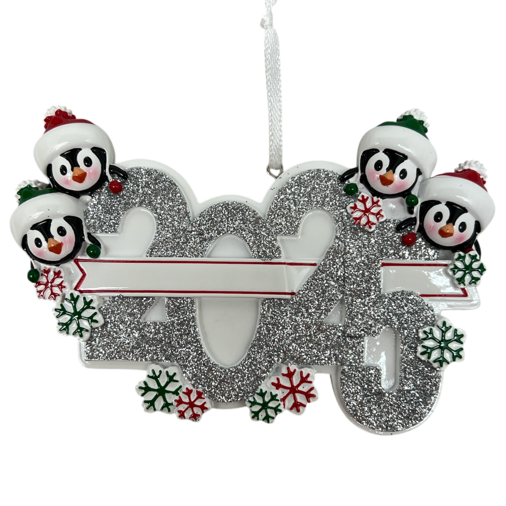 Ring in the year 2025 with the delightful 2025 Penguin Family of 4 Ornament! Featuring four huggable penguins, each sporting their own adorable Christmas hats and scarves, this ornament is the perfect way to capture the essence of family warmth during the winter season. Penguins are known for their strong family bonds, making this ornament not just a festive decoration, but also a tribute to the love and togetherness that holiday gatherings bring. With its sparkling silver finish, it’s sure to shine bright on your Christmas tree!
