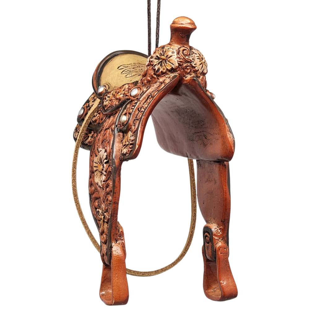 Infuse your holiday decor with rustic elegance using our Elegant Western Saddle Ornament! This stunning ornament showcases the artistry of western saddle design, elegantly adorned with beautiful floral engravings and shiny embellishments that elevate its appearance. Crafted from high-quality resin, it’s not just a decoration—it's a piece of art that celebrates the craftsmanship synonymous with the cowboy culture. The intricate detailing reflects a sense of tradition, making it a perfect fit for horse lovers and those with a penchant for western themes.