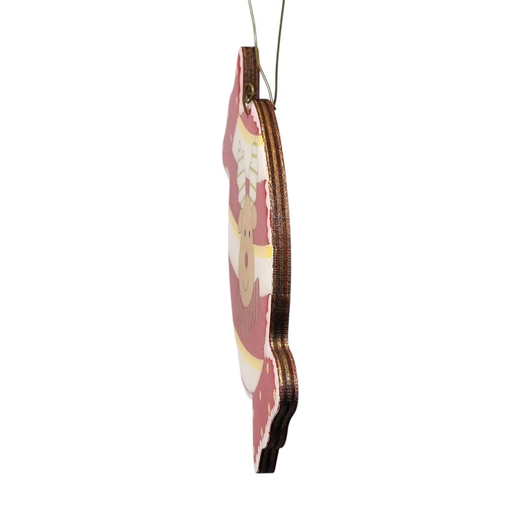 Sweeten your holiday decor with our Reindeer Candy Delight Wooden Ornament! This playful ornament takes the shape of a brightly colored striped candy, complete with cheerful reindeer face and festive antlers. The delightfully vibrant colors of red, yellow, and white evoke the joy of the holiday season, making it a perfect addition to your tree or as a charming accent on your holiday table. Capture the whimsical spirit of Christmas with this adorable piece that promises to bring a smile to all who see it!