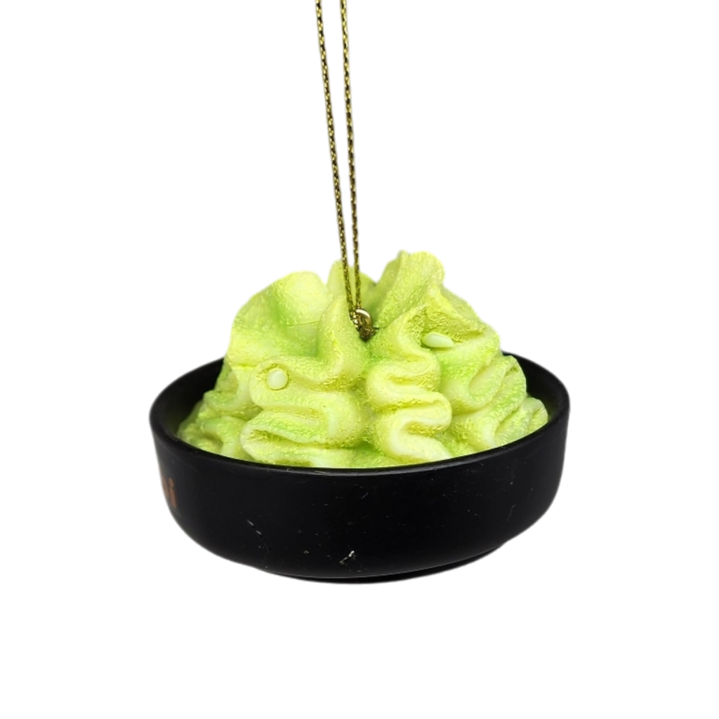 Add a dash of humor and uniqueness to your holiday decor with the Wasabi Ornament! This playful piece replicates a dollop of wasabi artfully resting in a sleek black dish, making it a quirky conversation starter for your festive gatherings. Intricately designed with vibrant green tones and delightful textures, it captures the essence of this spicy condiment while embodying the fun spirit of the season.