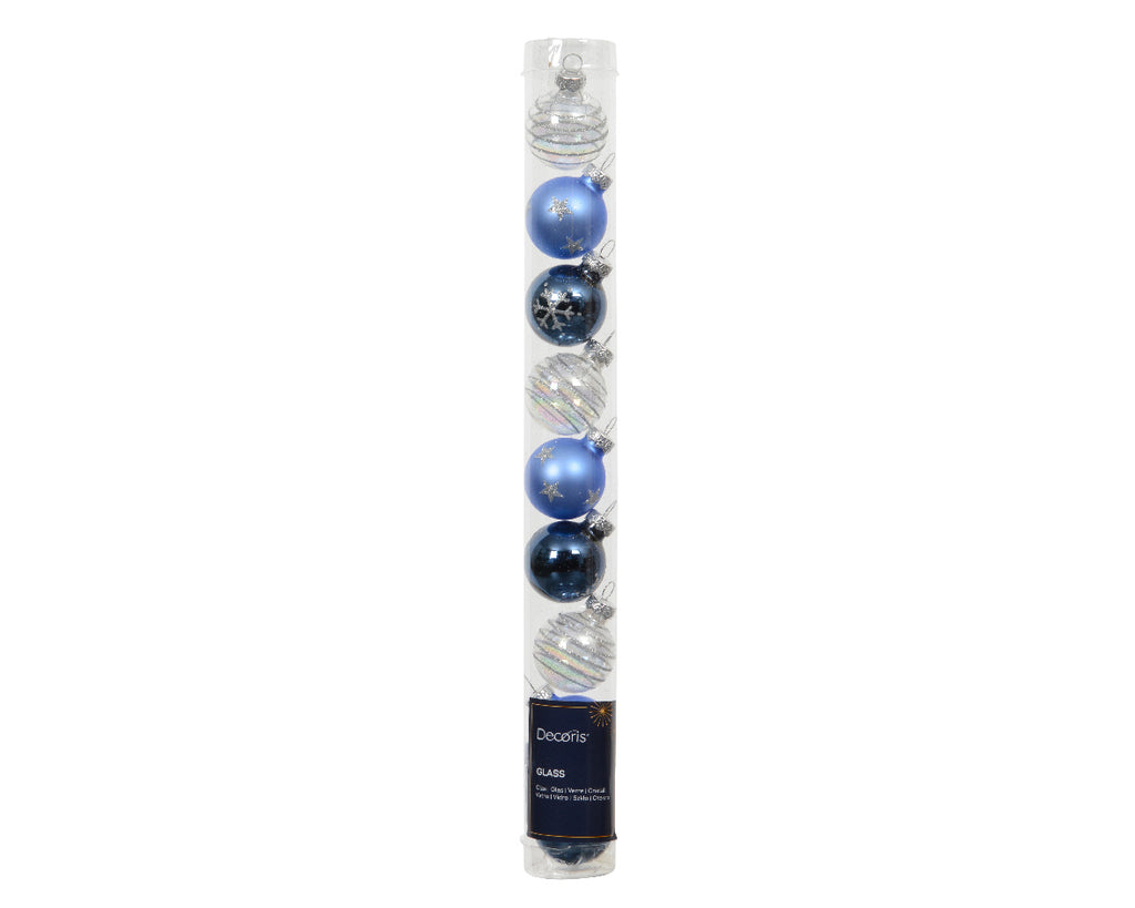 Bring a splash of the serene winter sky into your holiday décor with this delightful tube of blue glass ornaments! Each ornament is just about 1.2 inches in diameter and comes in a dazzling array of blues and colorful designs that capture the essence of tranquility and joy. Packaged in a stylish tube, these nine ornaments are perfect for easy storage when the season ends and make for a delightful gift for family and friends who love to decorate.