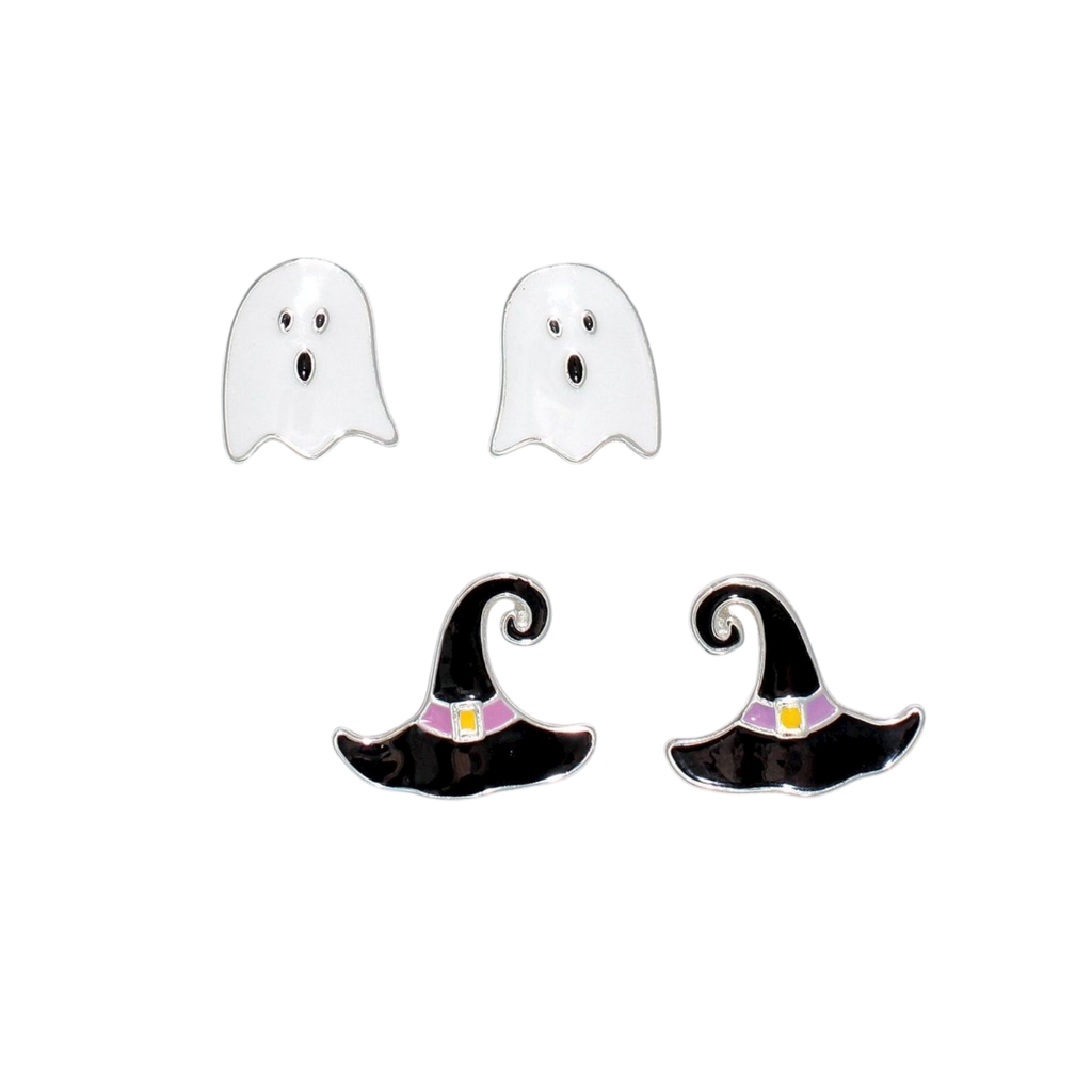 Ghost & Witch Hat Duo Earrings - Set of 2 Pairs