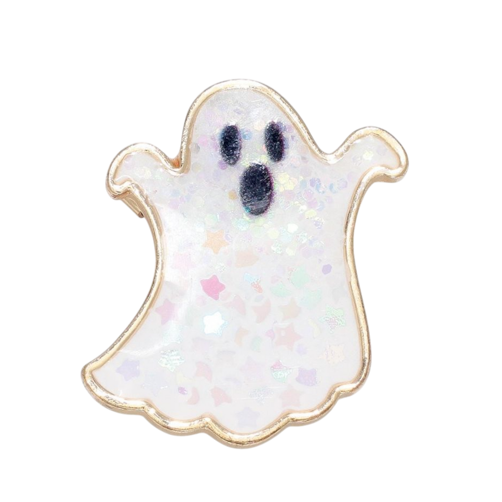 Celebrate the spooky season in style with our adorable Glittery Ghost Pin! Measuring 1 inch by 1 inch, this charming pin features a playful ghost design that sparkles with glittery highlights, adding a fun and festive touch to your Halloween attire. With its whimsical expression and shimmering finish, this ghost pin is perfect for showcasing your spirit during autumn celebrations or simply adding a delightful flair to your everyday wardrobe.