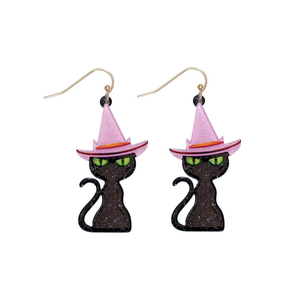 Crafted with care, these earrings are not only fun but also lightweight, making them comfortable for all-day wear. Whether you're dressing up for Halloween or simply wanting to add a bit of feline flair to your outfit, these Purple Hat Black Cat Earrings are a must-have accessory. They also make a fantastic gift for cat lovers, witches, or anyone who enjoys a playful addition to their jewelry collection!