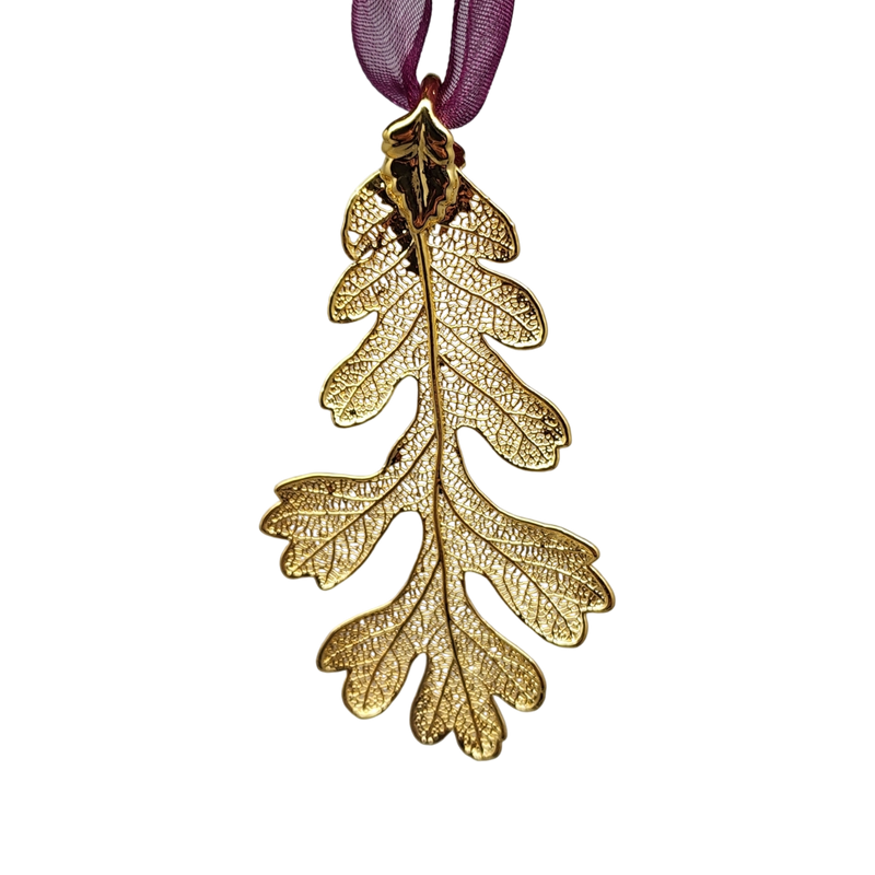 Oak trees are symbols of strength and endurance, often regarded as wise guardians of the forest. Their majestic presence and rich history evoke feelings of stability and protection, making this ornament not just a decorative item, but a meaningful addition to your environment. Perfect for gifting or as a cherished keepsake, this unique gold oak leaf ornament embodies the harmony of natural beauty and artistic craftsmanship, inviting a sense of serenity into your space. Hang it proudly and let its intricate design spark conversations about the wonders of the great outdoors.