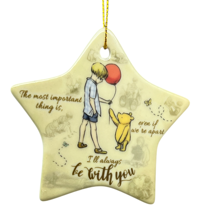 Cherish the magic of friendship with this "I'll Always Be with You" Winnie The Pooh ornament. Crafted from high gloss ceramic and measuring approximately 3 inches, it features a heartwarming design that captures a timeless bond. Perfect for adding a sentimental touch to your holiday decor or gifting to a loved one.