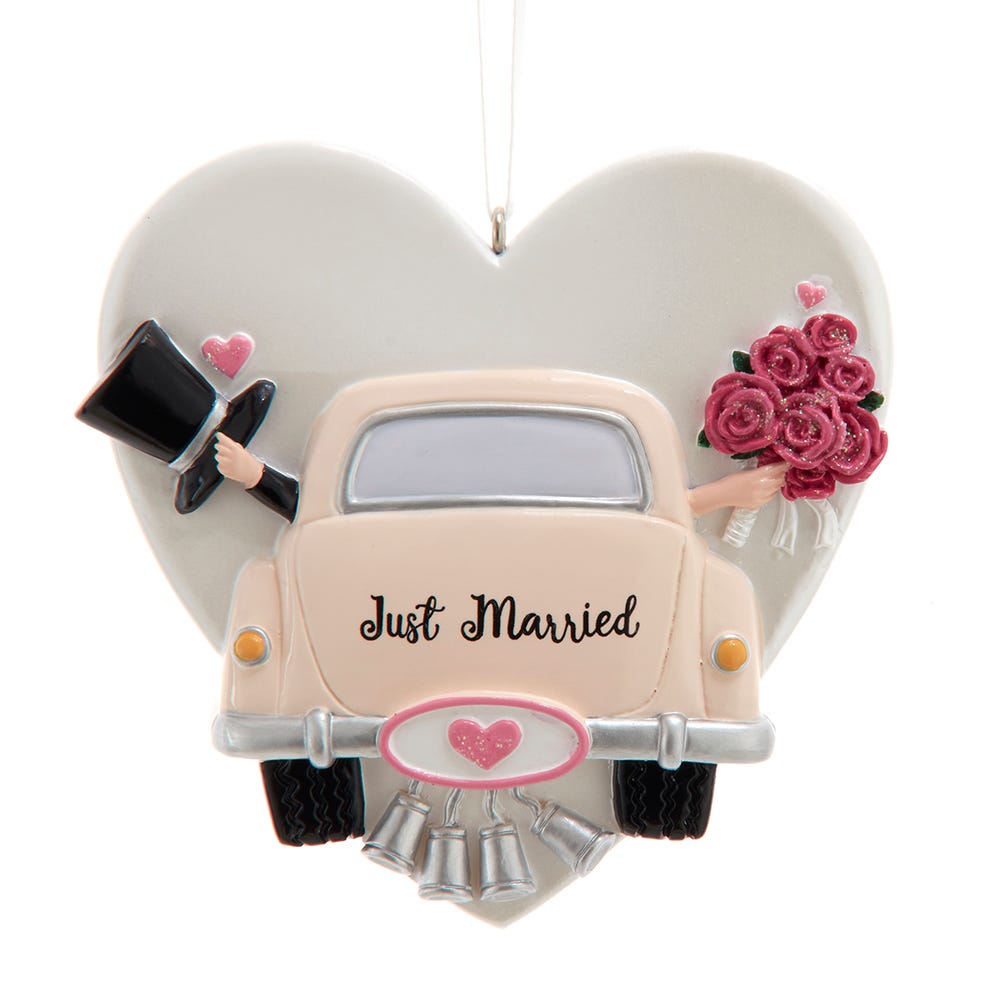 Add the "Just Married Ornament" to your collection or gift it to friends and family celebrating their love to remind them of the beautiful moments shared on their wedding day!
