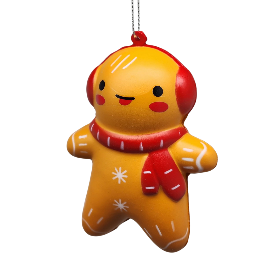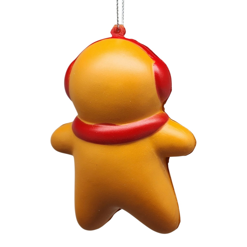 Bring a warm and festive touch to your holiday decor with this adorable gingerbread man ornament! Standing at around 4 inches tall, this charming ornament is made from soft foam and features a delightful smile, rosy cheeks, and cozy earmuffs, ready to celebrate the season in style. Covered in a vibrant orange hue and accented with a cheerful red scarf, this gingerbread figure captures the essence of holiday treats and adds a whimsical flair to your Christmas tree.