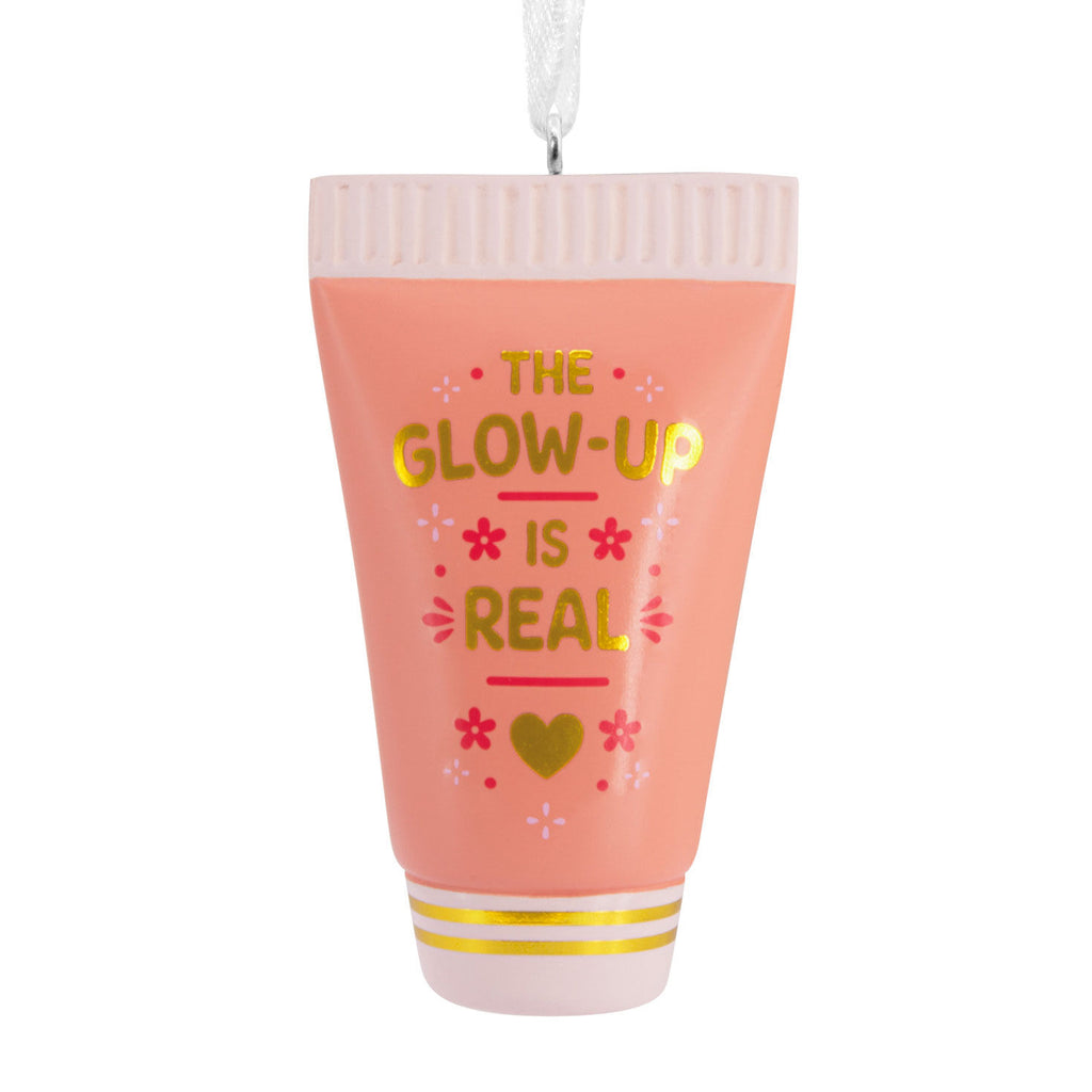 Self-care has become a well-known movement, emphasizing the importance of nurturing oneself in a fast-paced world. The phrase "glow-up" has become synonymous with transformation and personal growth, resonating with many as they embark on journeys of self-improvement and confidence. Decorate your space with this ornament to inspire yourself and those around you, making it a fabulous addition to any holiday collection!