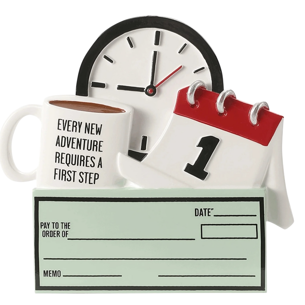 Celebrate the exciting milestone of your first job with our First Job Ornament! This charming piece creatively captures the essence of starting a new adventure with a delightful design that includes a clock, a coffee mug, and a calendar marked with the number one. The inspiring message, "Every New Adventure Requires a First Step," serves as a motivational reminder of the journey ahead. This ornament is a perfect way to commemorate that special moment in your life when you take a big leap into the professional world!