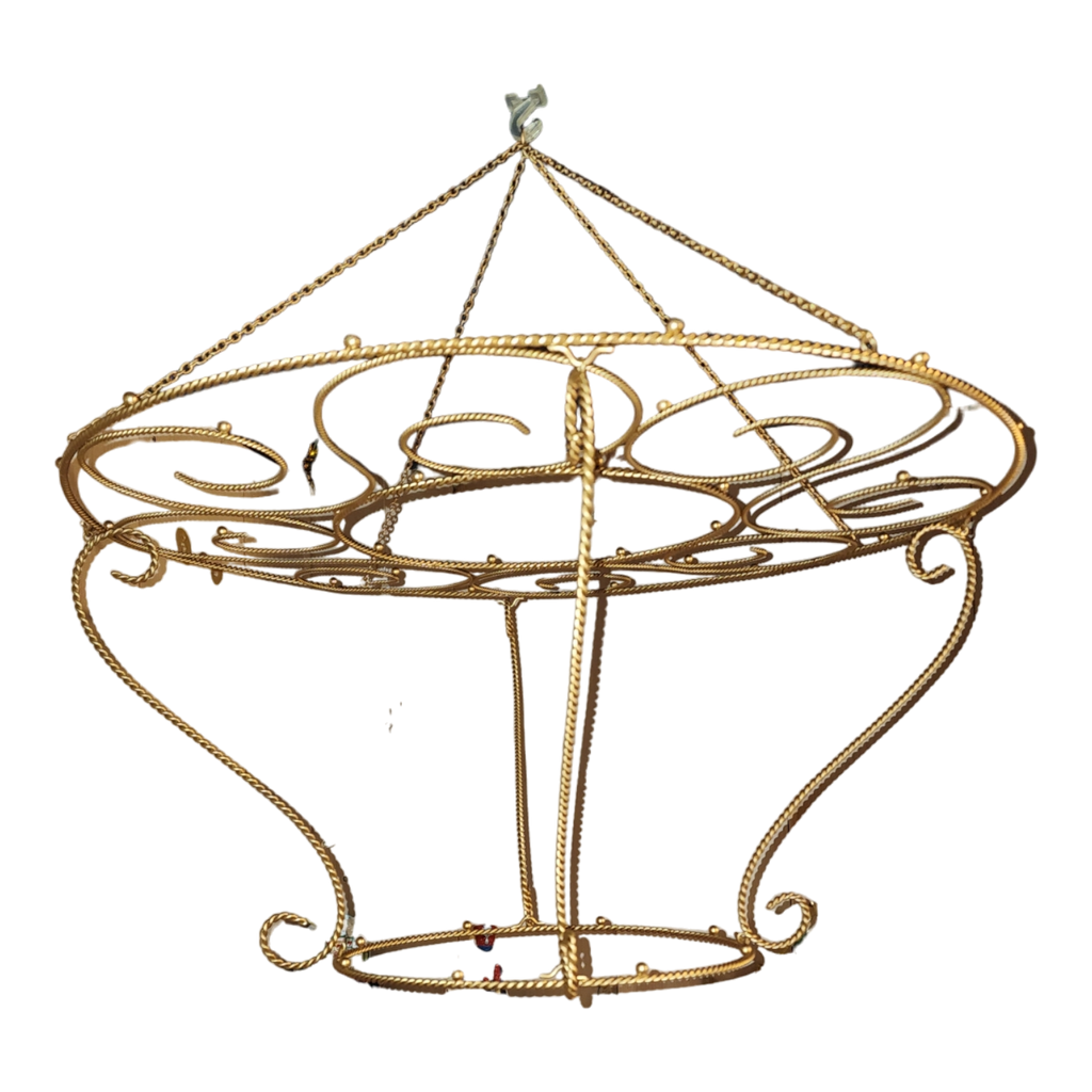 The chandelier's design exudes a timeless charm, making it a perfect addition during the holiday season or for special occasions. Whether adorned with shimmering baubles, delicate glass ornaments, or seasonal decorations, it transforms into a dazzling centerpiece. The golden finish enhances its allure, ensuring that it not only supports the ornaments gracefully but also adds a touch of sophistication to your decor. This versatile piece can be a stunning focal point in living rooms, entryways, or any space where you wish to create a captivating and festive atmosphere.