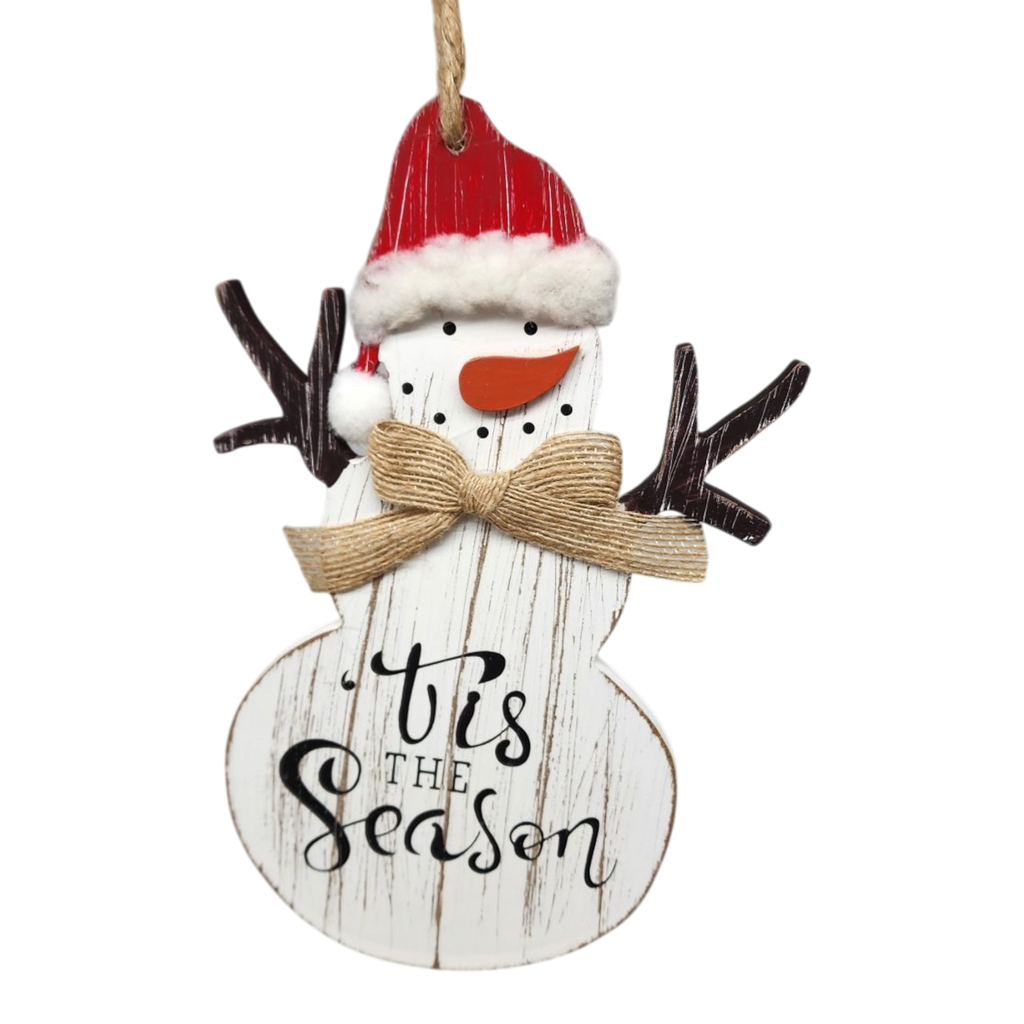Embrace the magic of winter with our delightful Charming Snowman Ornaments! Each ornament stands at a sweet 8.3 inches and comes in two adorable designs. One greets you with a festive "’Tis the Season," complete with a jolly red hat and a fluffy white beard, while the other invites winter joy with "Let It Snow," topped with a classic black top hat. Crafted from sturdy wood and embellished with rustic details, these ornaments are perfect for bringing seasonal cheer to your home.