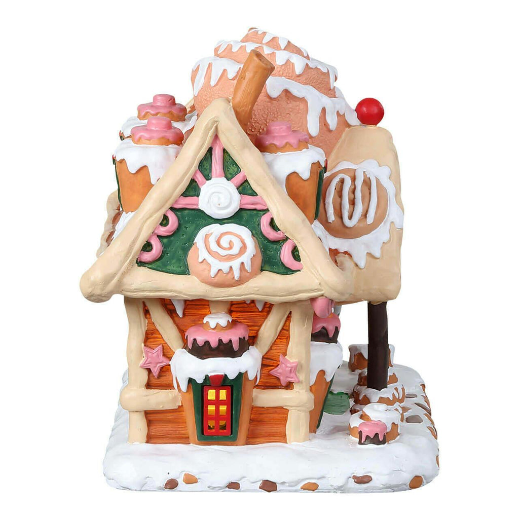 Step into winter bliss with the Cinna-Swirl Cabin, a charming cottage overflowing with that delightful aroma of freshly baked treats! Adorned with fun details like replica cinnamon sticks, luscious icing, and an irresistible decoration of cinnamon buns atop the roof, this enchanting building will have you dreaming of holiday festivities. Perfect for your Christmas village, the Cinna-Swirl Cabin brings a magical touch that recalls the warmth of homemade goodies, making it an ideal centerpiece during your holiday gatherings or festive display.