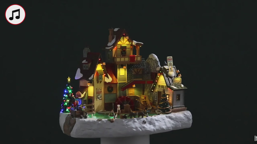 Immerse yourself in the enchanting charm of The Rocky River Grist Mill, where the beauty of nature and delightful activity come together in perfect harmony! This captivating display features a working pump that sends shimmering water down the chute, effortlessly powering a rotating water wheel, bringing a dynamic touch to your holiday village. With intricate details, including charming cottages and a scenic pond where boats float gently, this scene invites you to take a step back in time to a simpler, more joyful era.