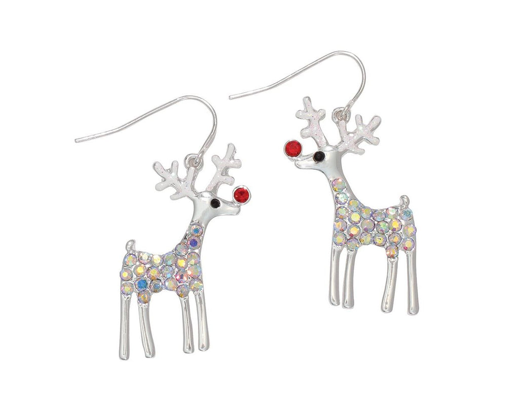 Measuring approximately 1 inch long, these earrings are lightweight and comfortable, making them perfect for all-day wear. Crafted from high-quality materials, their silver-tone finish beautifully complements the colorful crystals, ensuring that you’ll stand out wherever you go. Whether you’re treating yourself to a bit of holiday cheer or looking for the perfect gift for a friend, these AB Crystal Studded Silver Rudolphs Earrings are sure to bring joy and laughter to your winter festivities!
