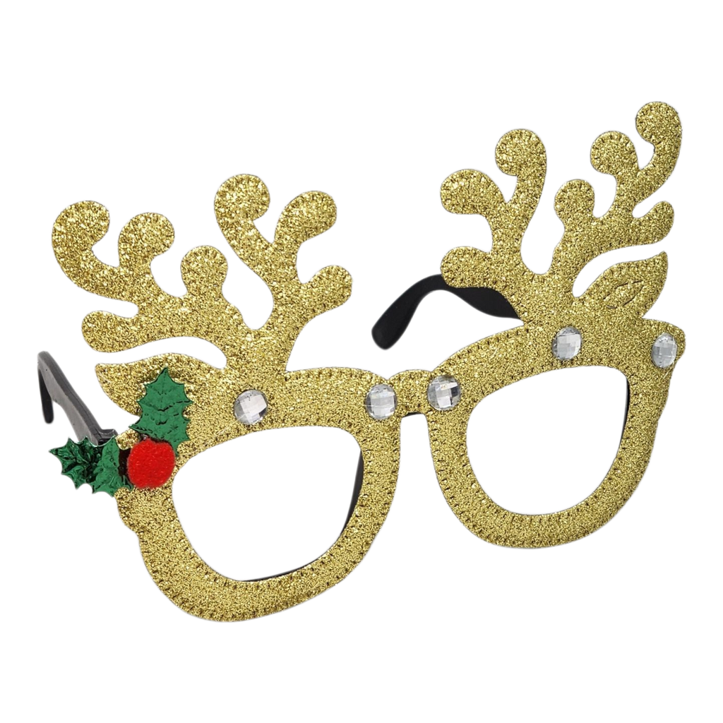 These playful glasses not only provide loads of fun but also inspire a sense of togetherness and laughter among friends and family. Whether you're enjoying a festive meal, taking holiday photos, or exchanging gifts, the Glittering Gold Reindeer Glasses are a charming way to showcase your holiday spirit and create unforgettable memories. Slip them on to celebrate the joy and magic of the season with style!