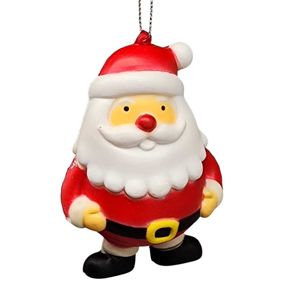 Welcome the season of cheer with this delightful Santa Claus ornament, sure to bring smiles and festive spirit to your holiday decor! Measuring approximately 4 inches tall, this adorable ornament is crafted from soft foam, showcasing Mr. Claus with his signature fluffy white beard, rosy cheeks, and a cheerful grin. Dressed in his iconic red suit and black belt, this jolly Santa is ready to deliver joy and magic to your Christmas tree.