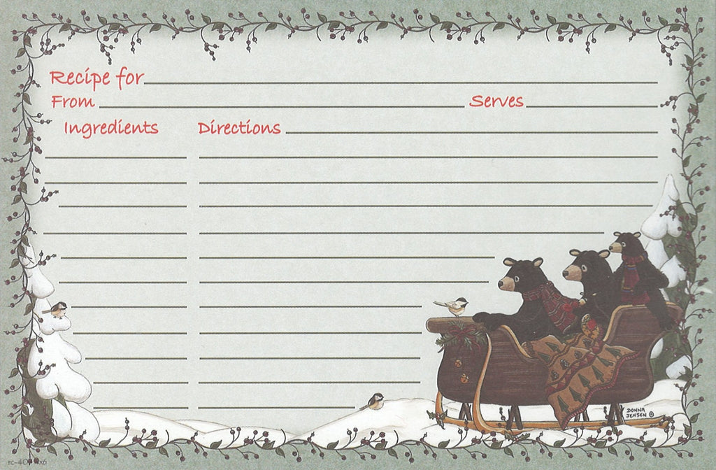 Recipe Cards - 4x6 - Bears in a Sleigh